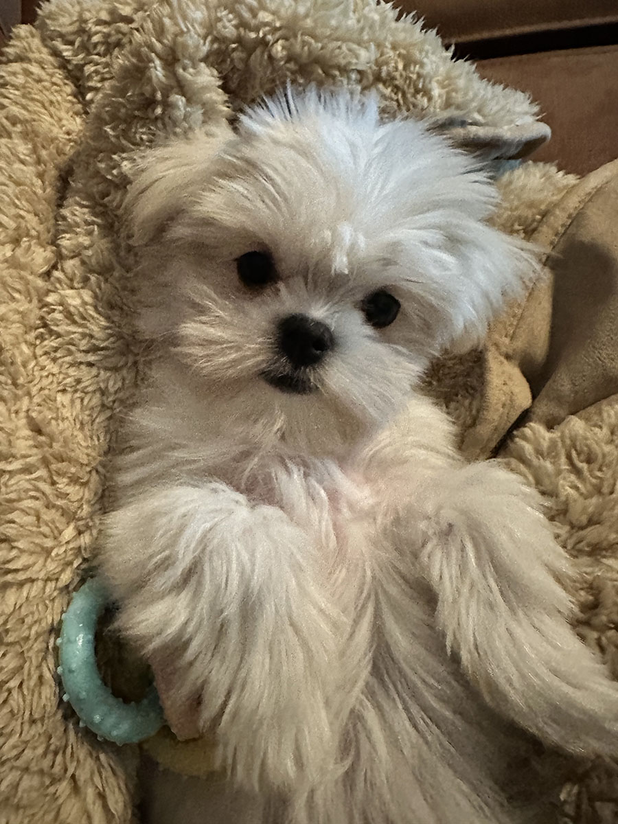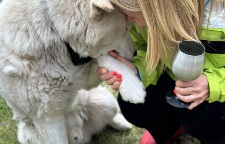 XL-suuruses Alaska malamuut Ubert, kelle erialaks on nunnutamine ja tema XS-suuruses sõber, maltese kutsu Mila. Saad neid soovikorral kaisutada!
